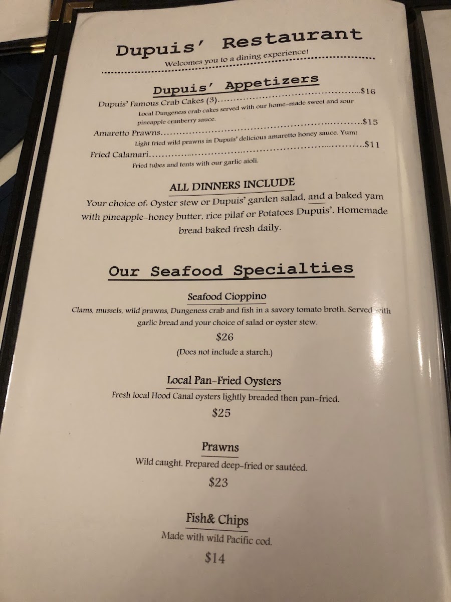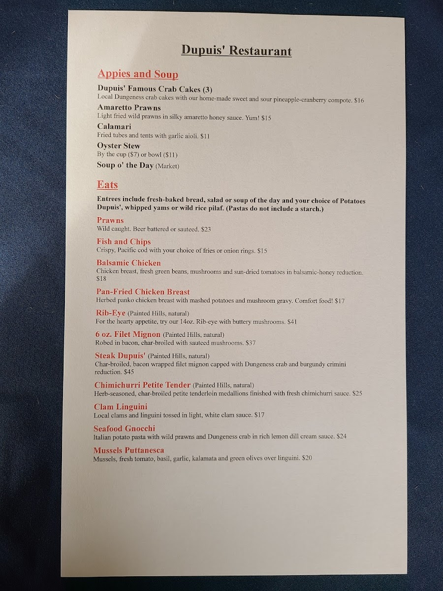 Welcome to Dupuis' Restaurant, a hidden gem nestled along Highway 101 in Port Angeles, WA. This historic landmark, established in 1920, offers a unique dining experience that seamlessly blends charming ambiance with culinary excellence. Each dish is crafted with passion, utilizing fresh ingredients and house-made recipes.